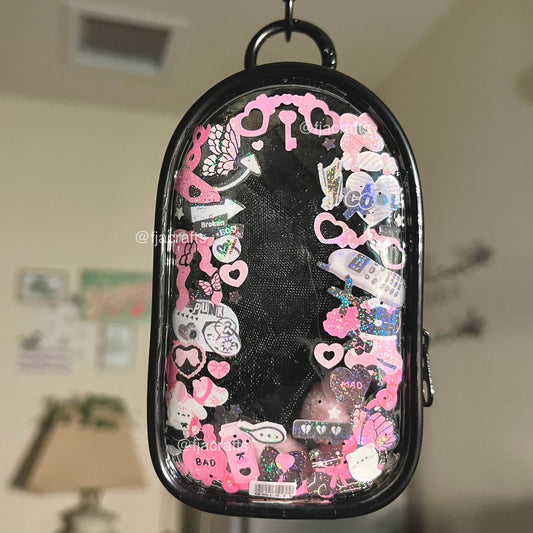 Angel Clear Case Kawaii Deco Sticker Keychain Bag Clip | Friends version, black, pink | figure not included