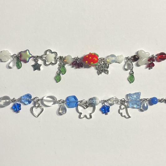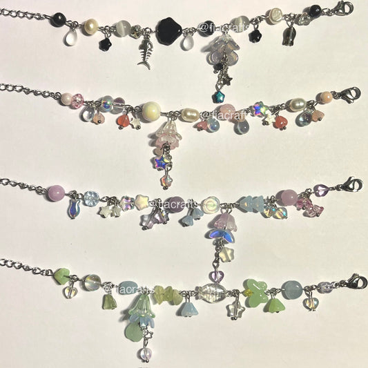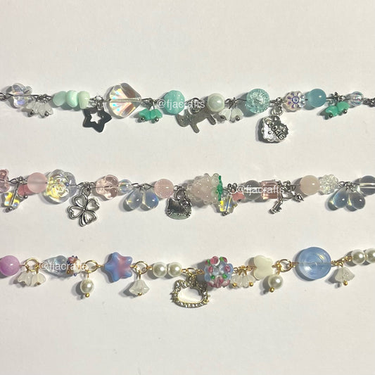 Cute Dainty Jiggly Clutter Charm Bracelets | Seafoam green, light pink, purple blue gold