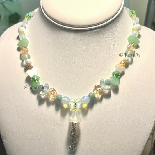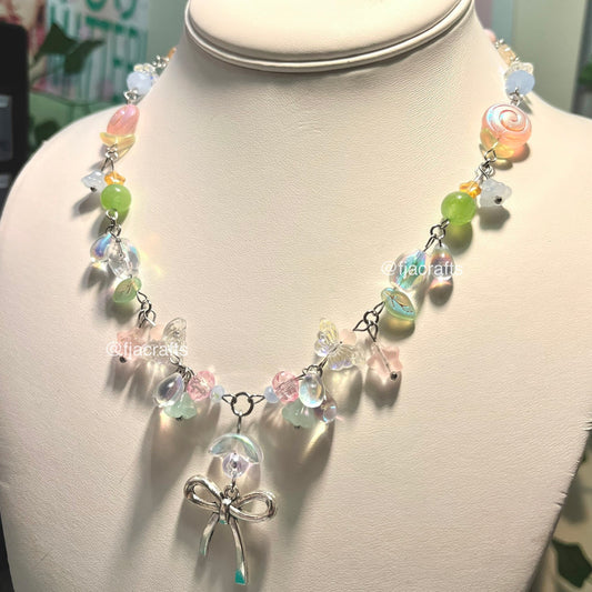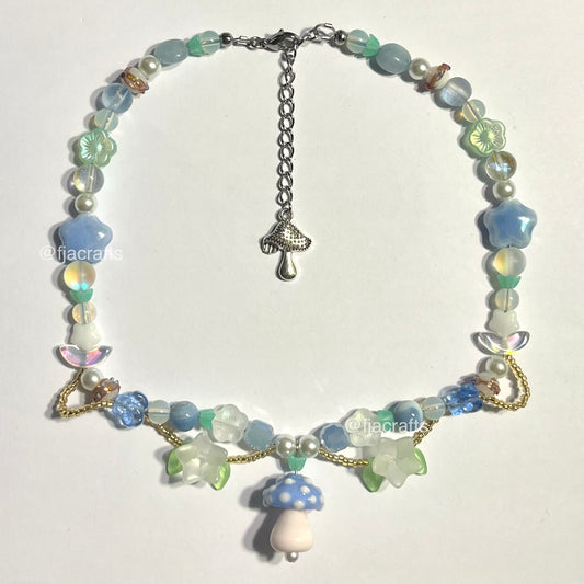 Enchantress Mushroom Jelly Necklace Choker| blue, Pearl, gold, flowers