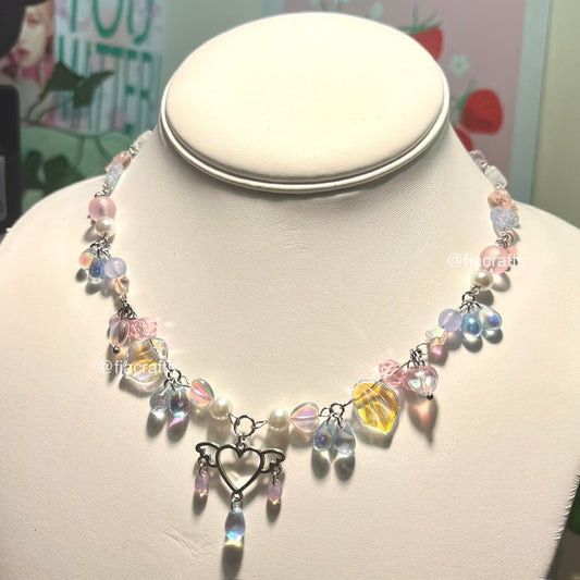 Coquette Princess 3-Way Necklace Choker Pearl Dainty | silver, heart, bow, pink, flowers | Sweetheart Jewels