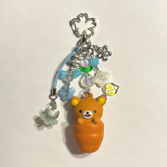 Rila Bear Cute Kawaii Beaded Clutter Squishy Keychain Bag Clip | kkuma brown bread bun yellow green frog