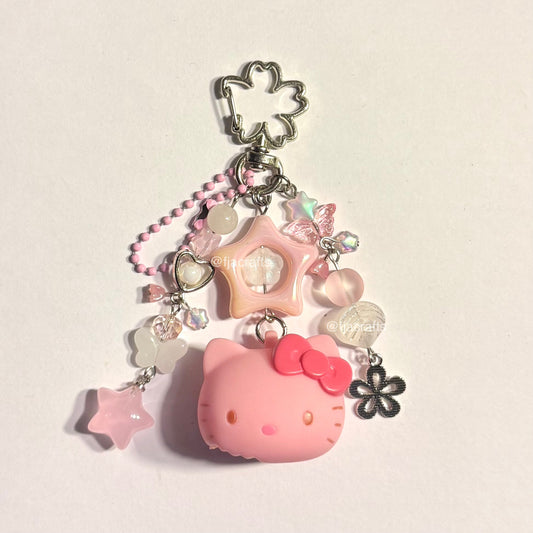 Kitty Cute Kawaii Beaded Keychain Bag Clip | pink, stars, bow, balloon