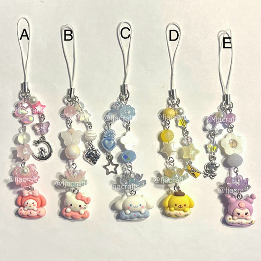 Friends Dessert Sweet San Cute Kawaii Beaded Phone Charm | hello, heart, Star, pink, blue, kitty, yellow, purple, donut, rio