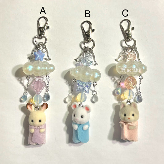 Sylvan Family Cute Kawaii Beaded Clutter Keychain Bag Clip | rain, cloud, pink, purple, blue