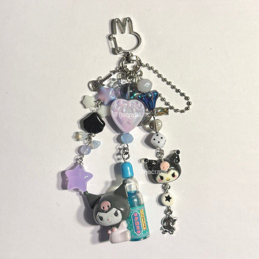 LBB Cute Kawaii Beaded Keychain Bag Clip | purple pink green monsters bubu stars