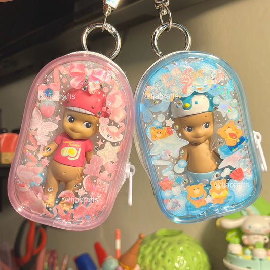 Angel Clear Case Kawaii Deco Sticker Keychain Bag Clip | summer penguin, summer whale, tanned, pink, blue