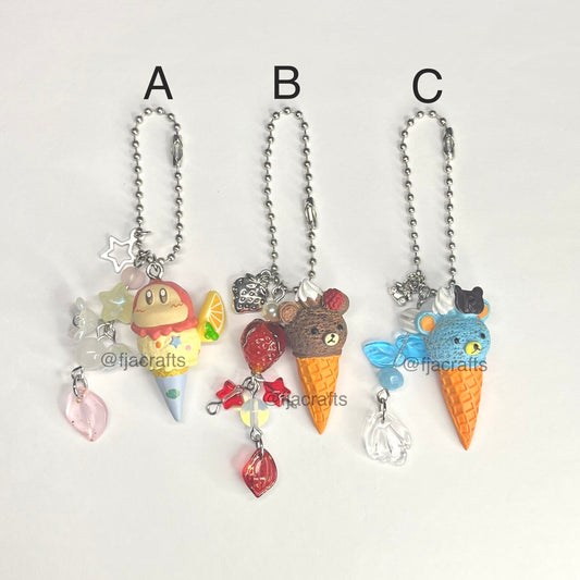 Rila Kirb Waddle Ice Cream Dessert Kawaii Beaded Keychain Bag Clip Charm | Sweets Collection | brown yellow pink blue orange| food, cute, kkuma, dee